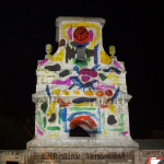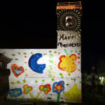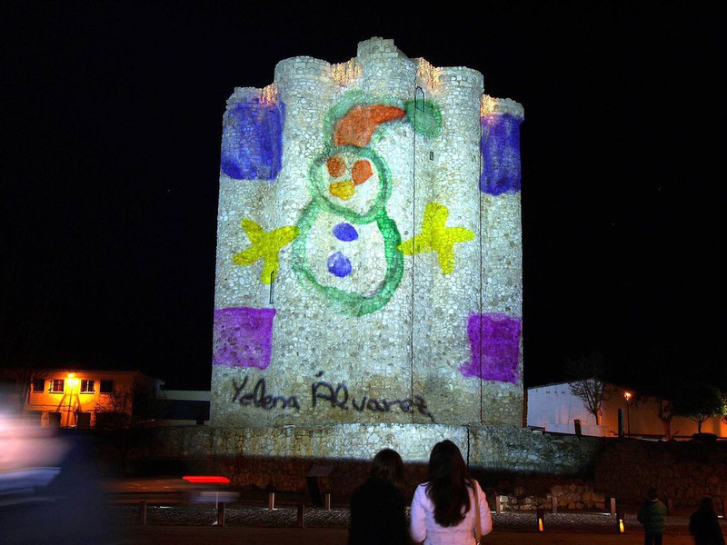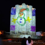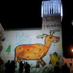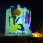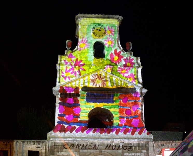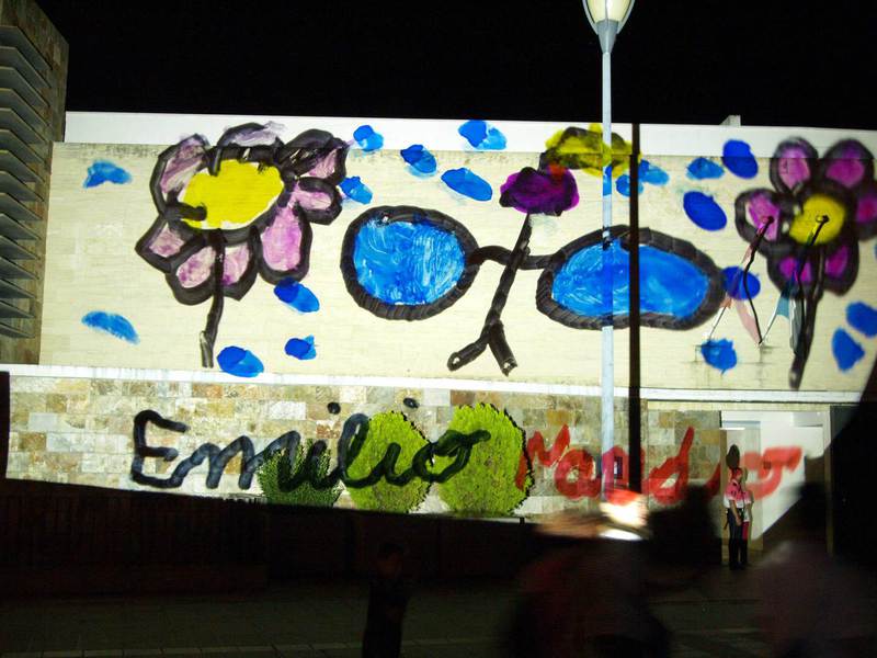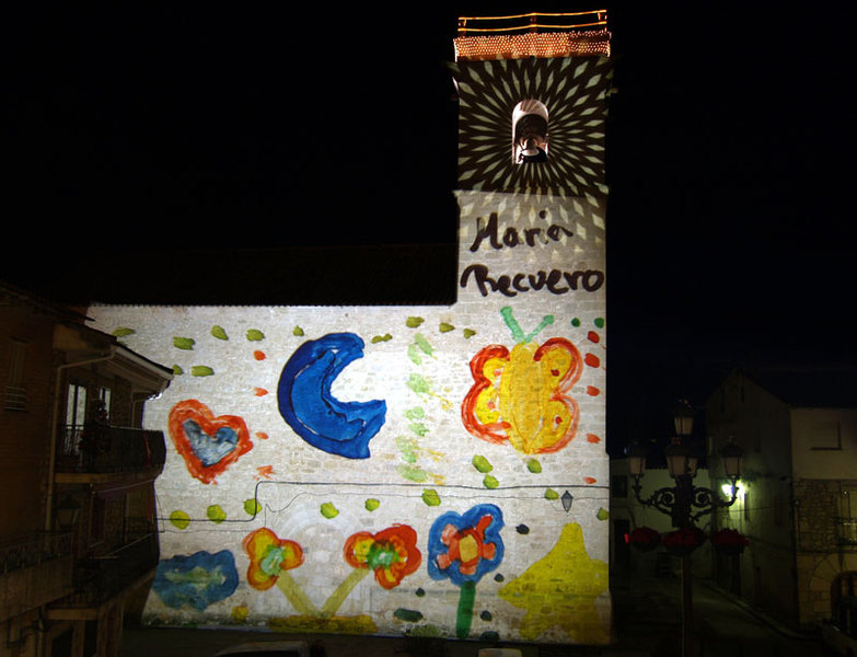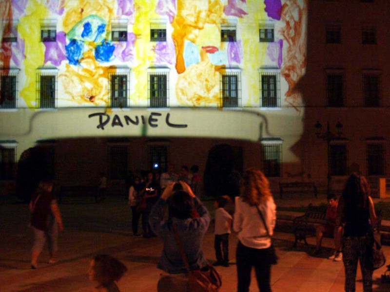 Las proyecciones en los talleres que se realizan en las ciudades o pueblos, suelen hacerse al anochecer sobre la fachada de algún edificio emblemático de dicha ciudad.