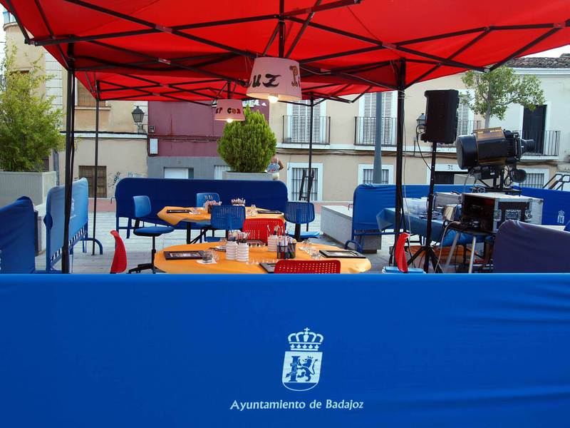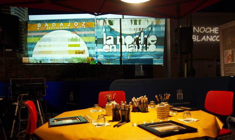 NEOLUZ gestiona toda la infraestructura necesaria para la realización del taller: carpas, monitores, decoración, sillas, mesas, pinceles, pinturas ...