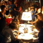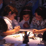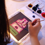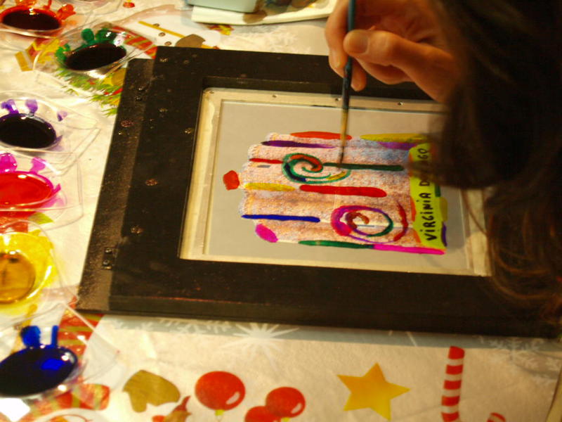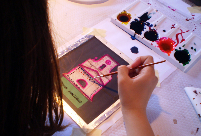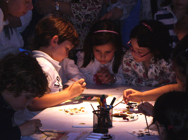 Taller de arte visual infantil para todas las edades. Los niños pintan sobre unas "diapositivas gigantes" , para después proyectar esos dibujos, cada uno con su nombre, con el proyector de imágenes de gran formato PANI, sobre la fachada elegida, decorándola con luz y color, y consiguiendo un espectacular impacto visual: los niños y sus familias disfrutan con este novedoso taller.